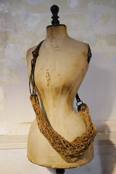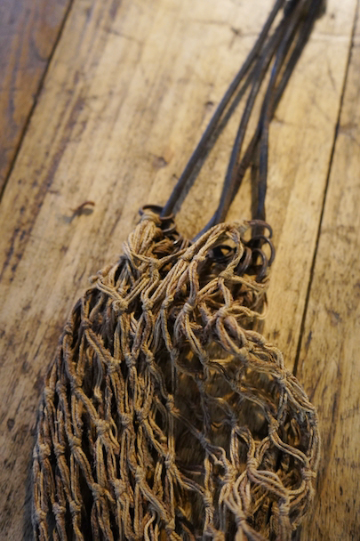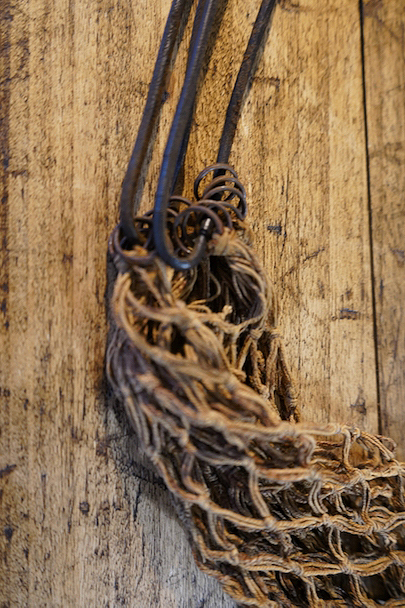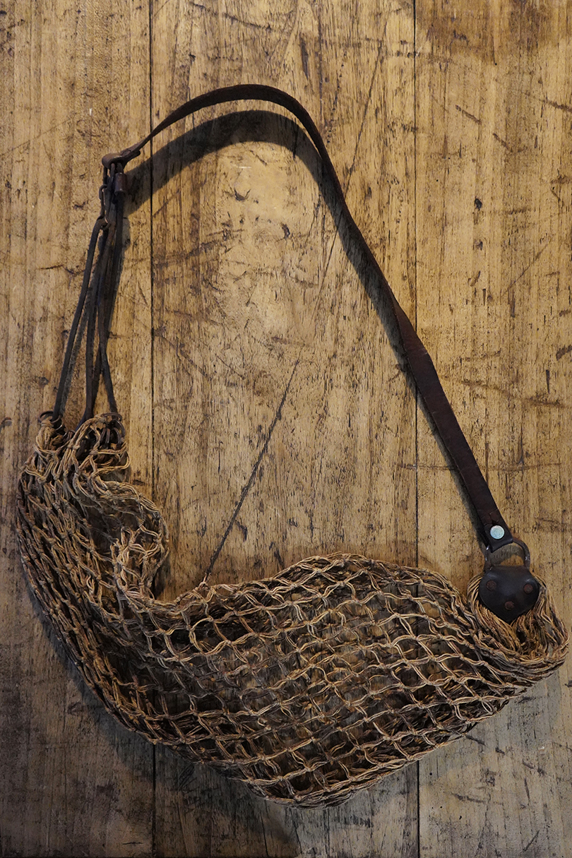 ハンティング用のネット・ショルダーバッグ。1930年代頃までにつくられたものだと思います。獲物を入れるためのもので、良い味わいがあります。ネットにほつれ、金具にサビが見られます。