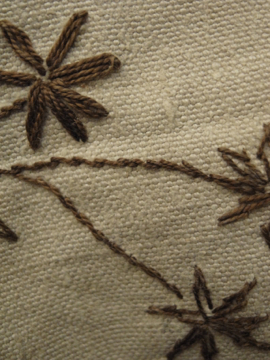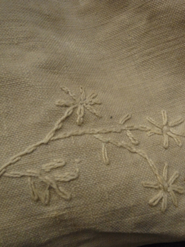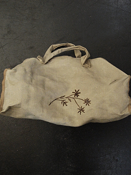 花模様が手刺繍されたリネンのハンドバッグ。1900年から1920年代頃につくられたものだと思います。ざっくりとしたリネンの質感と4面に施された刺繍が素朴で良いです。多少のシミや汚れ、ほつれ等の経年の傷みがありますが、状態は良いと思います。