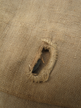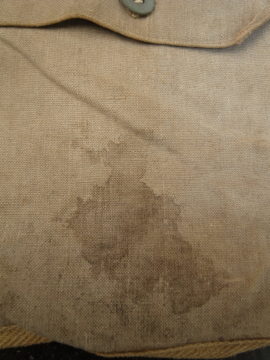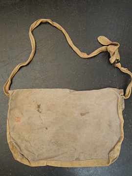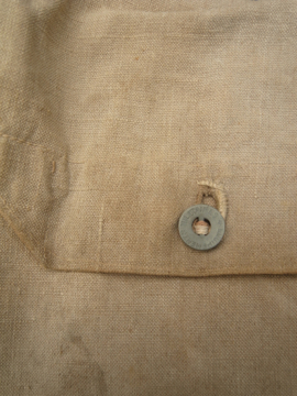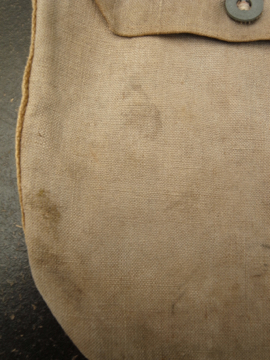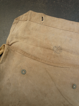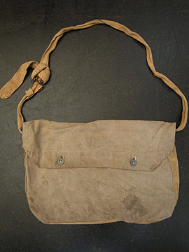 1930年代につくられたミリタリーのショルダーバッグ。レアな生成りの丈夫なリネン素材が使い込まれて味の出た良い質感です。内側に1932年のスタンプがあります。サイドについたバックルでストラップを留め、長さを調節します。全体的にシミがあります。使用感がありますが時代を感じさせる良い品です。