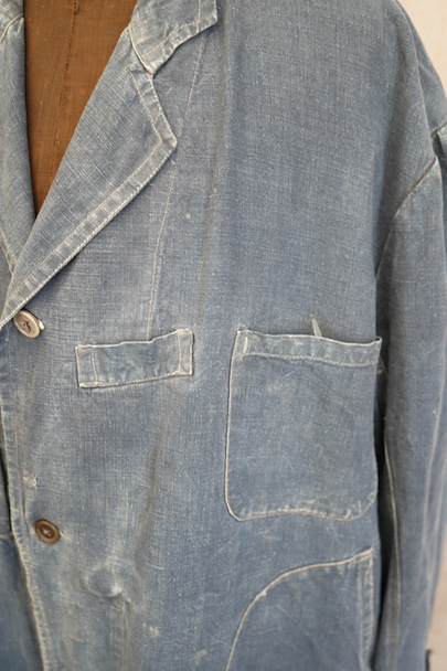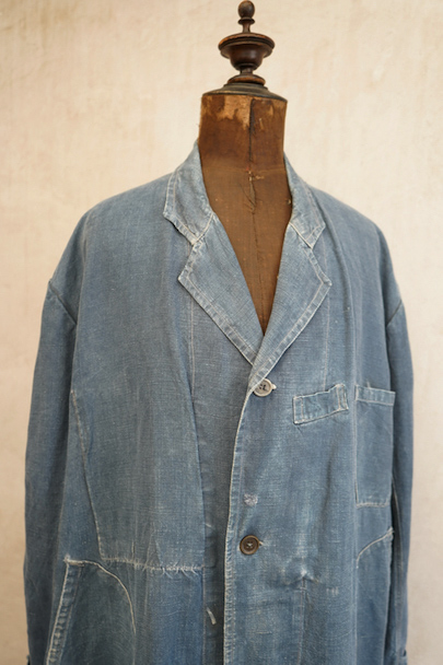 1940's-1950's faded indigo linen maquignon coat "Au Molinel"