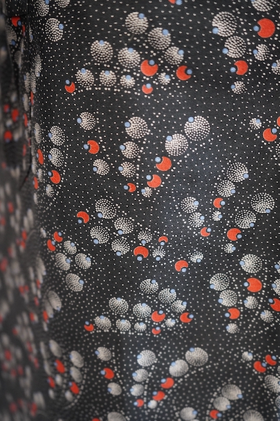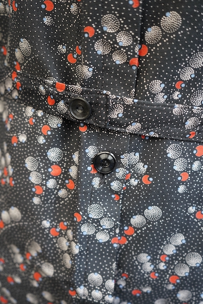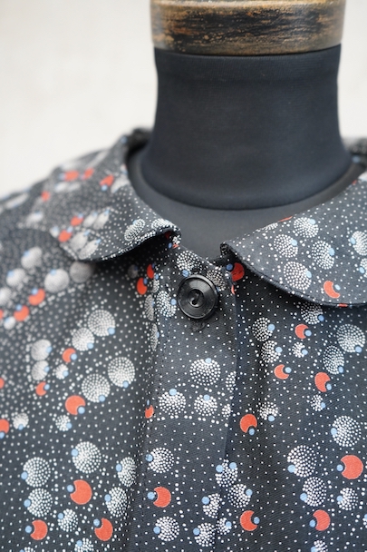cir.1930's printed black cotton work coat "round collar" NOS