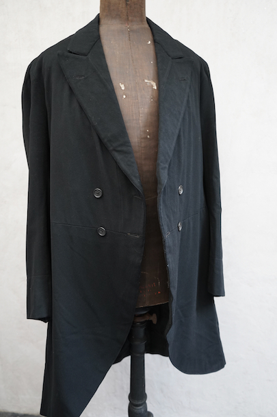 early 20th c. black wool cutaway coat "Au Grand Bon Marche"