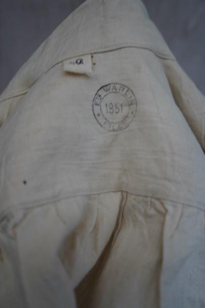 1950's French military H.M. double breasted coat "100% linen" NOS