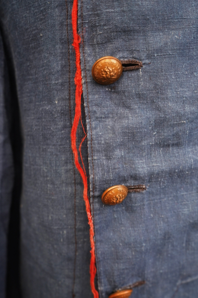 cir. 19th c. indigo linen double breasted firefighter jacket