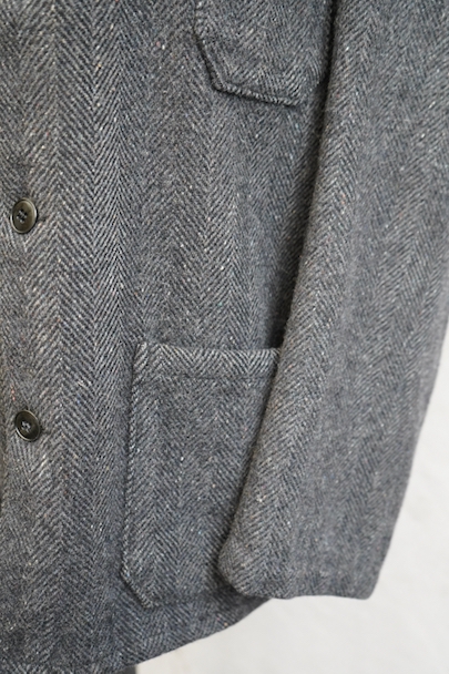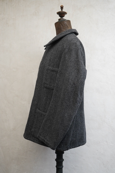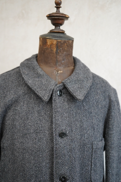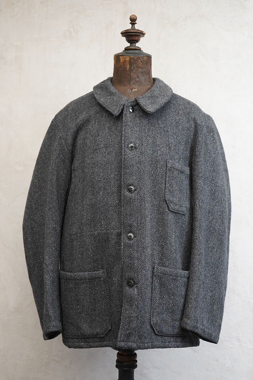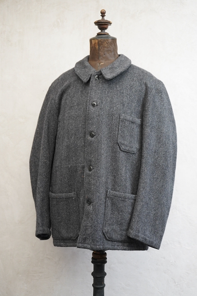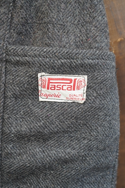 20世紀中期頃につくられたパスカルのウール・ヘリンボーンのワーク・ジャケット。フレンチ・ワークらしい丸くカーブした襟、フロントに3つのパッチポケット。内ポケットが1つ。目立ったダメージはなく状態は良いです。