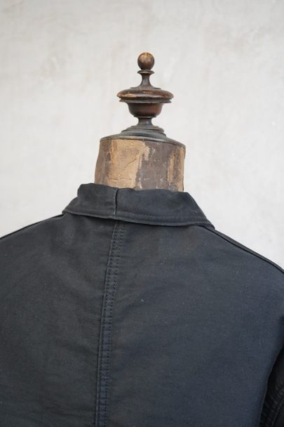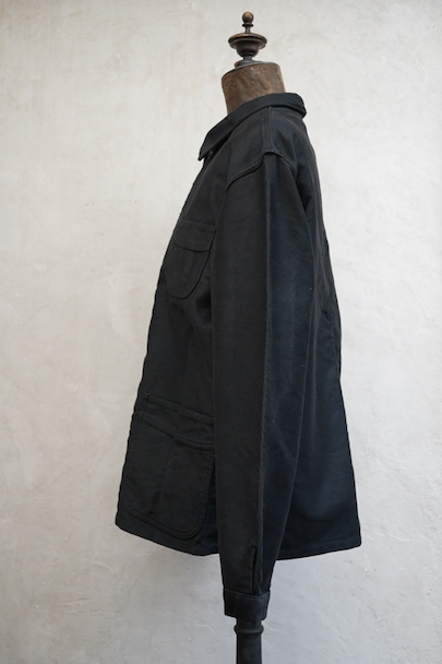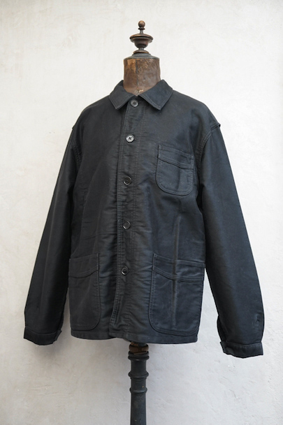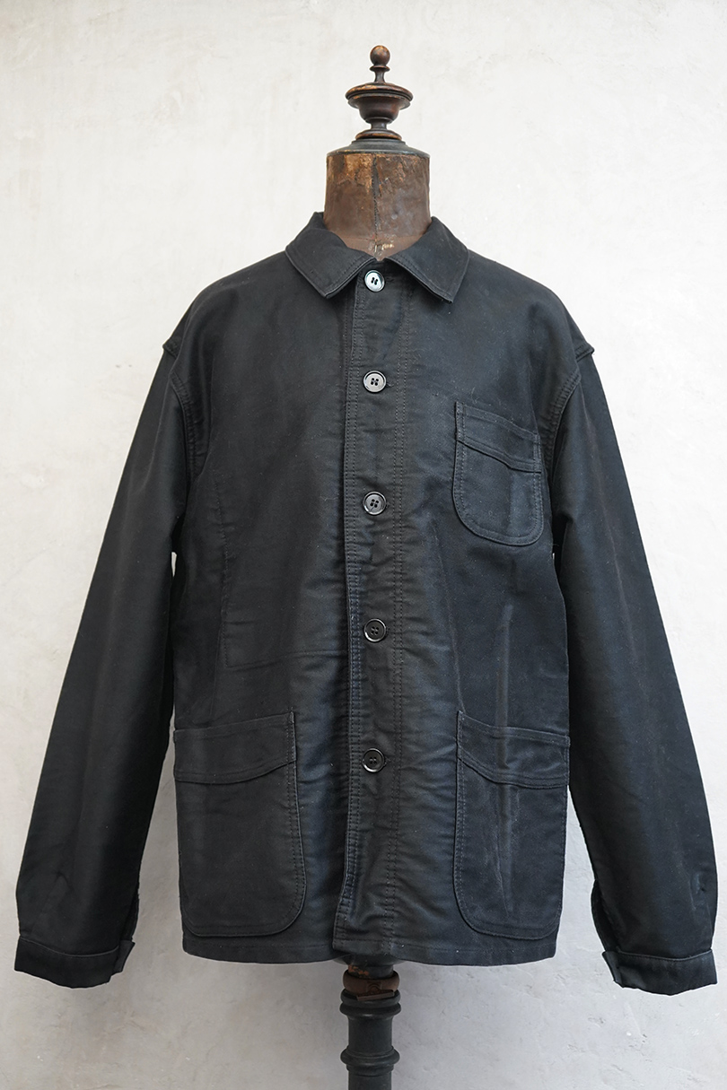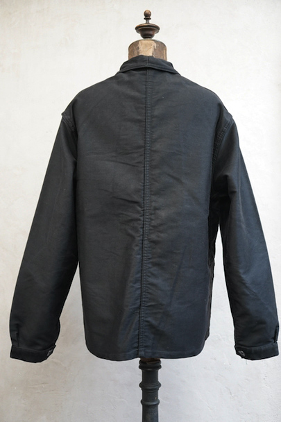 ワークウエア老舗の"Le Mont St Michel"のブラック・モールスキン・ワークジャケット。中厚手のコットン素材。フレンチ・ワークウエア定番の一着、最も人気の高いメーカーです。プリントタグ、表記サイズは50です。おそらく未使用品だと思われますが、一度洗濯しています、使用感は無く状態はとても良いです。