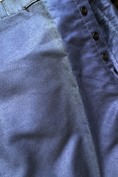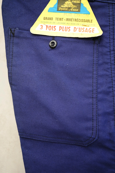 mid 20th c. blue moleskin work trousers "Le Mont St Michel" NOS