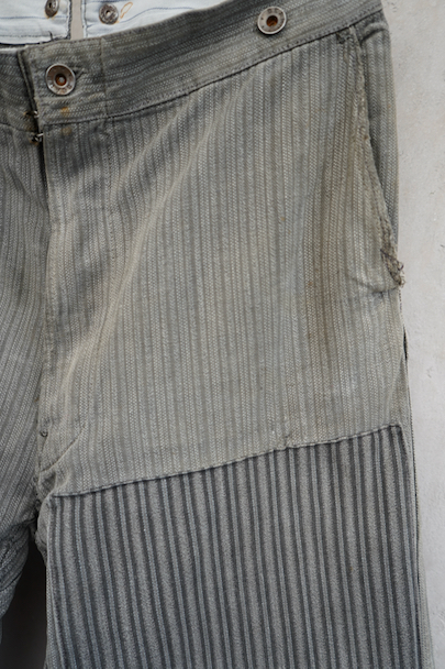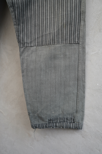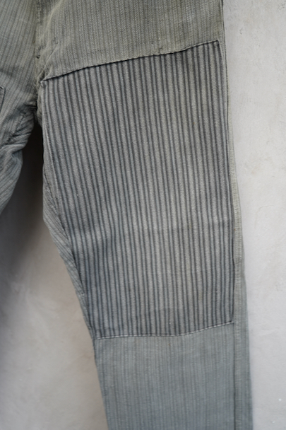 cir. 1940's patched stripe cotton work trousers