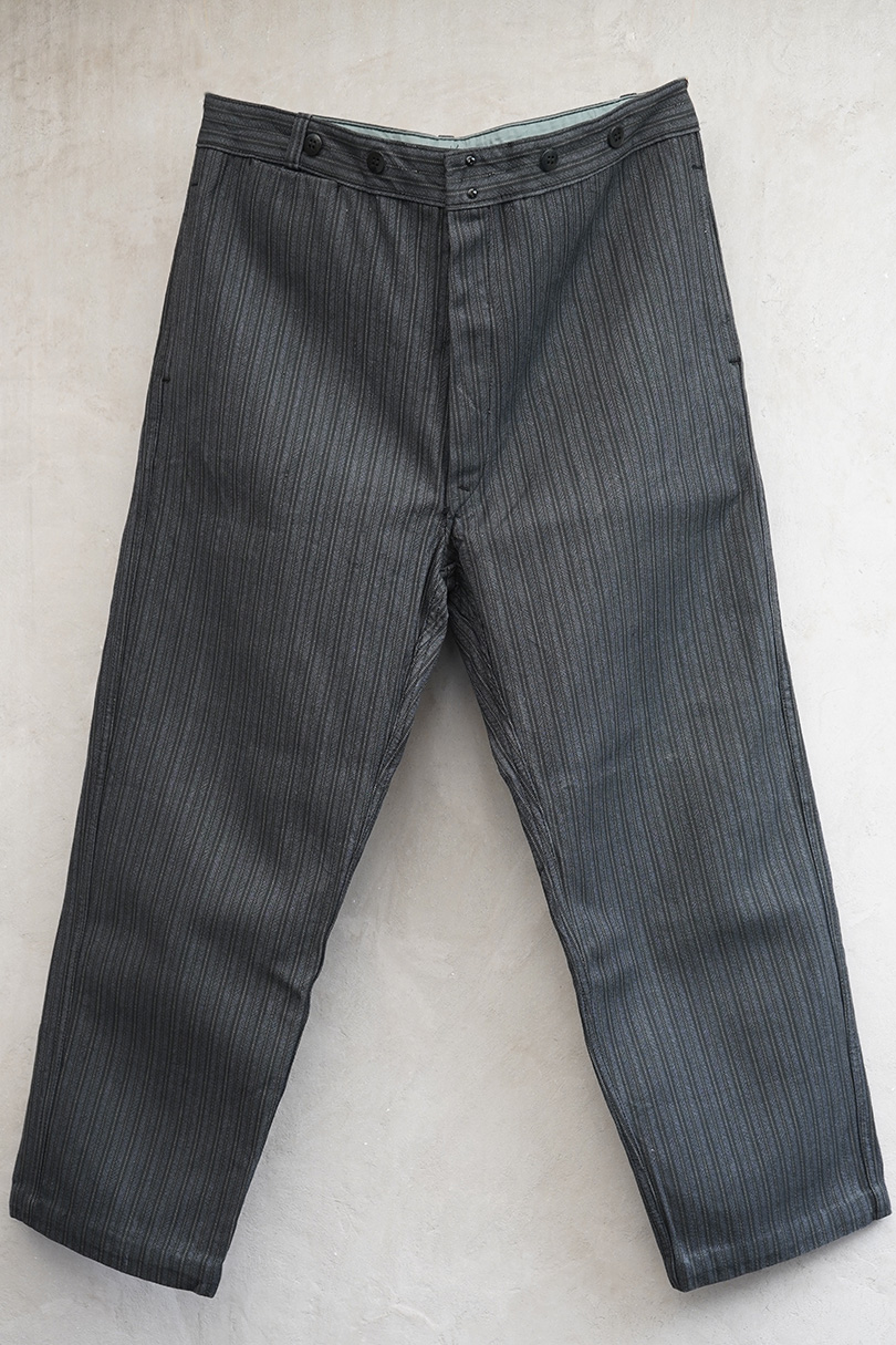 mid 20th c. striped cotton work trousers "Le Mont St Michel" NOS