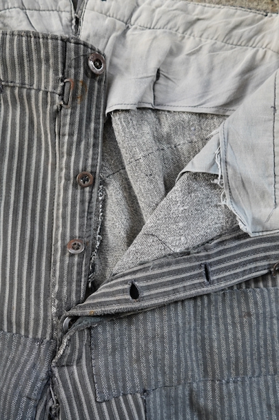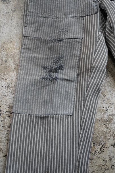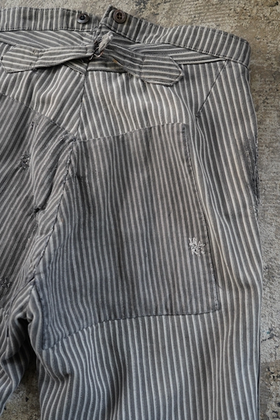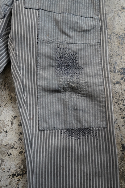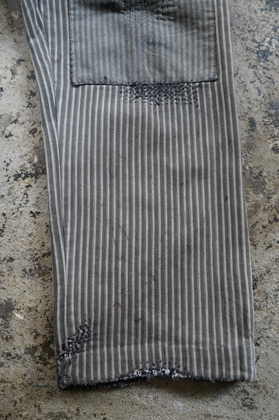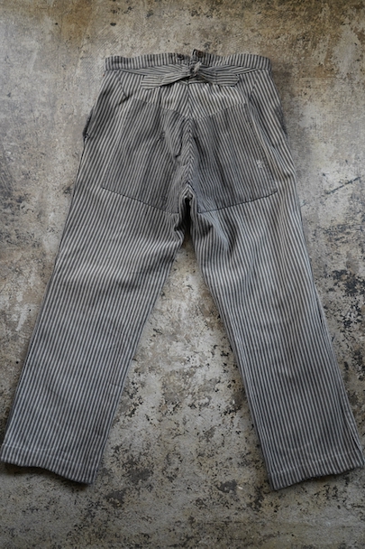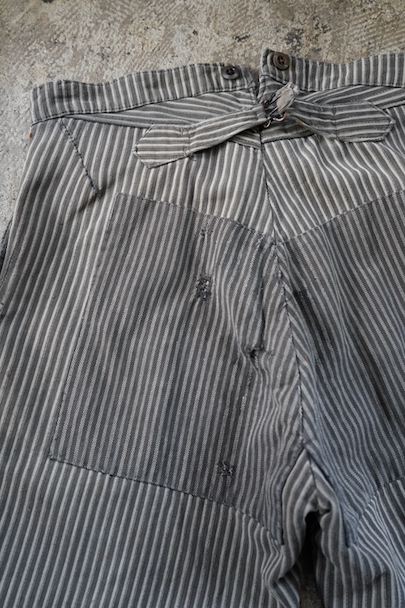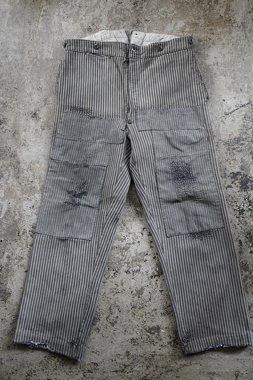 1930's-1940's striped cotton work trousers "Patch and Darn"