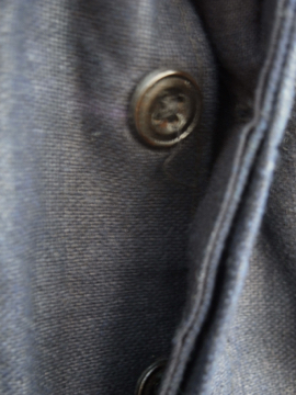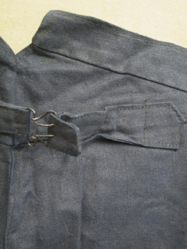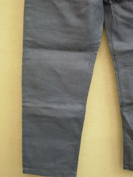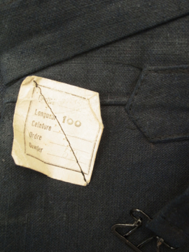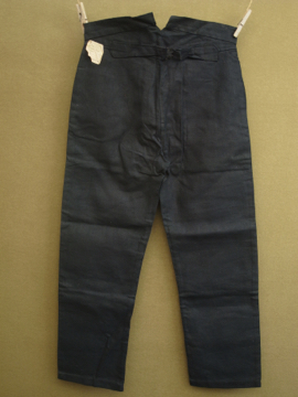 1920年から1930年代頃につくられたインディゴ染めリネン・ワークオアンツ。細身でウエストのバックが高い綺麗なシルエット、デッドストックです。フロントはボタンフライ、紙ボタンが使われています。バックのストラップで多少のウエストサイズの調節が可能。ポケットは左右のみ。少し汚れがあります。洗濯はしておりませんので、初めて水通しする際、多少縮む可能性があります。これからの色落ち、経年変化が楽しみな一本です。
