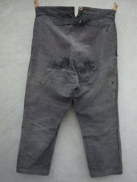 1930's striped cotton work trousers "patch and darn"