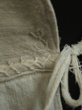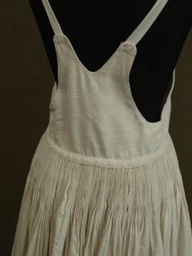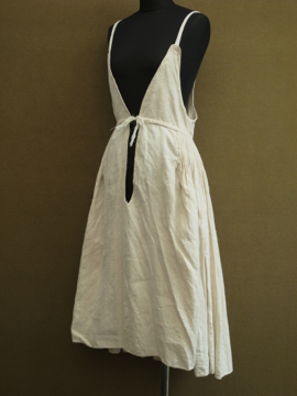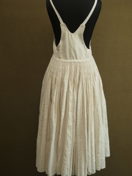 20世紀初期から中期頃までにつくられたリネンのアンダースカート。ドレスのように着用すると素敵です。ハンガリーのもの。ウエスト周りに入った細かいギャザーや刺繍、全て手縫いでつくられた存在感のある品です。ウエストは紐で留める仕様。全体的に薄い汚れ、擦れ等の使用感は若干ありますがとても良い味があります。手作業の素晴らしさを感じられます。