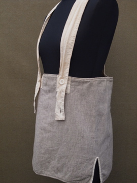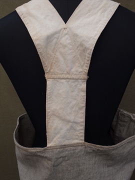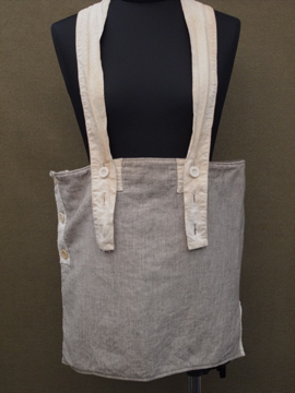 ボディ部分はウールが使われいることから胴を暖めるためのものでしょうか。骨ボタンなどが使われており、素材感からおそらく1940年代より前につくられたものだと思います。サスペンダー部分のボタンで多少の調節ができます。ボタンホール周りに直し痕、全体的にシミがみられます。コーディネートで遊べそうな珍しい品物です。