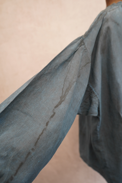 early 20th c. indigo linen biaude open