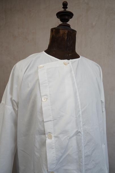 cir.1930’s white cotton shirt “side button”