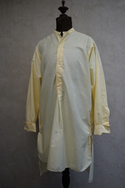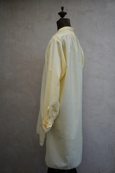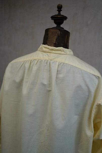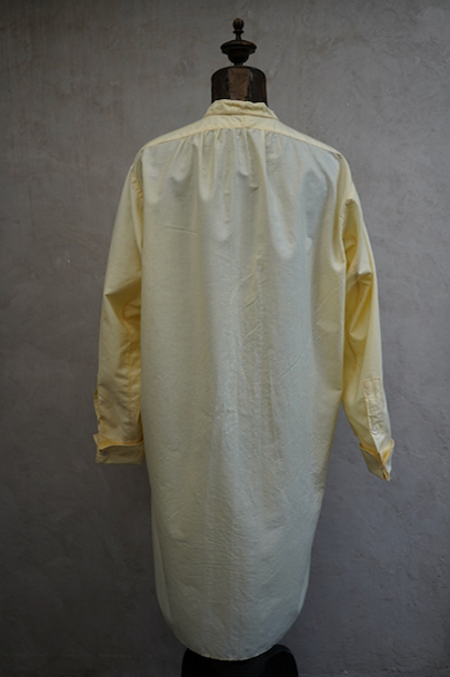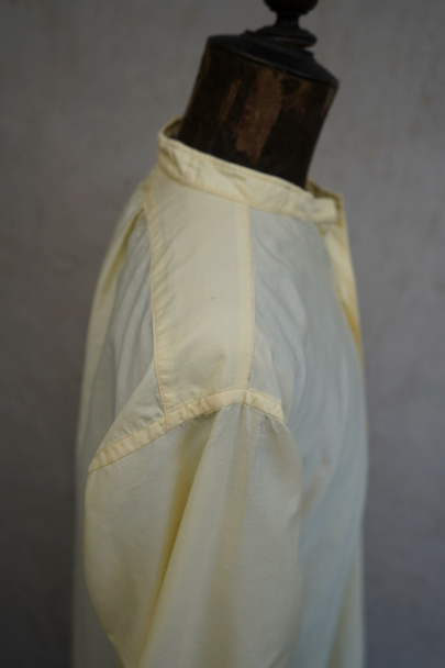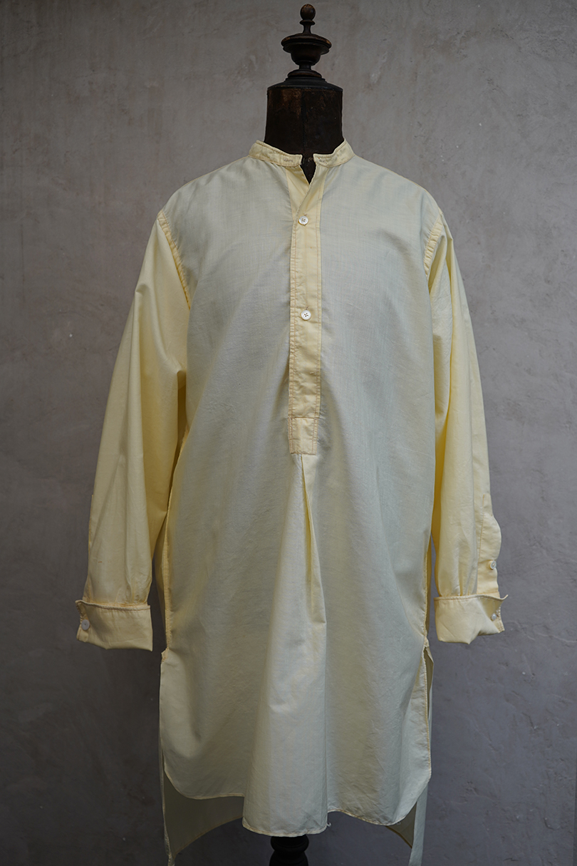 1940年代頃までにつくられたペールイエロー・カラーのプルオーバー・シャツ。比較的薄手のコットン素材、さらっと着心地が良い布地です。袖口はダブル・カフスです。表記サイズは40。薄いシミが少しありますが、使用感はなく、状態は良いです。