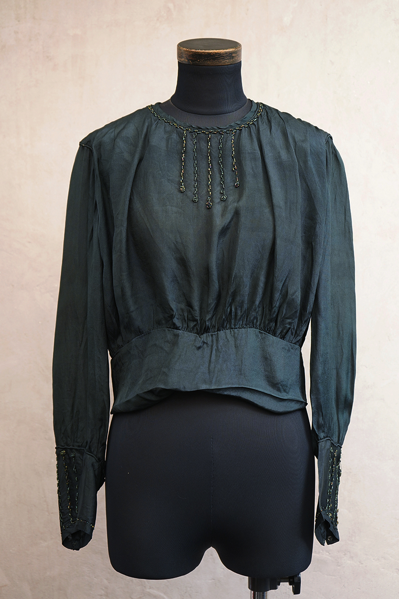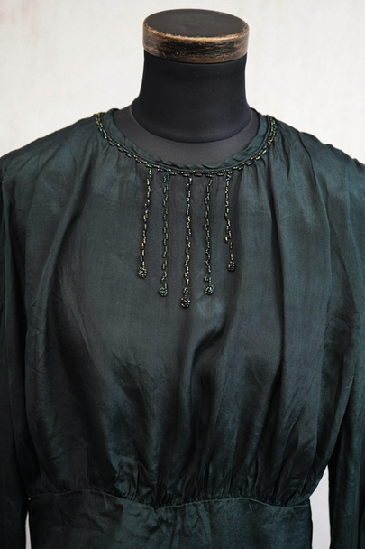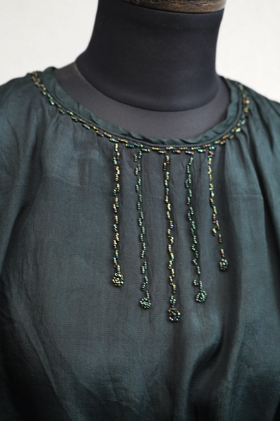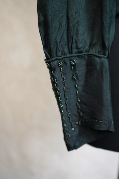 1910's-1920's beaded green silk blouse