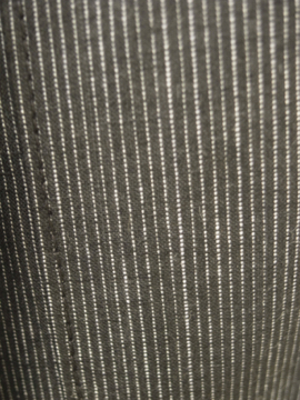 20世紀初期頃につくられたストライプ織りのエプロン。デッドストックです。コットン素材ですが、のりの残ったハリのある素材感です。ポケットの形が良く、口がパイピングされている等、つくりも綺麗です。目立ちにくいですが、裾近くに1.5mm程の小さな穴があります。その他は保管中についた汚れが少しありますが、状態はとても良いです。