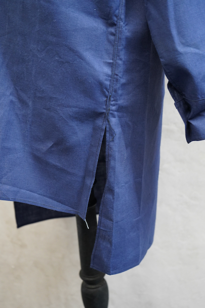 1930年代頃につくられたプルオーバー・シャツ。デッドストックを一度洗濯しています。ネイビー・ブルーのコットン地です。ツバメ型の襟、ボタンはガラス製です。若干保管中についた色焼けがあります。その他は状態の良い綺麗なシャツです。